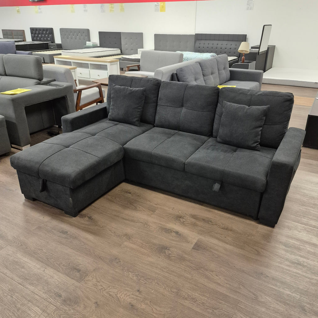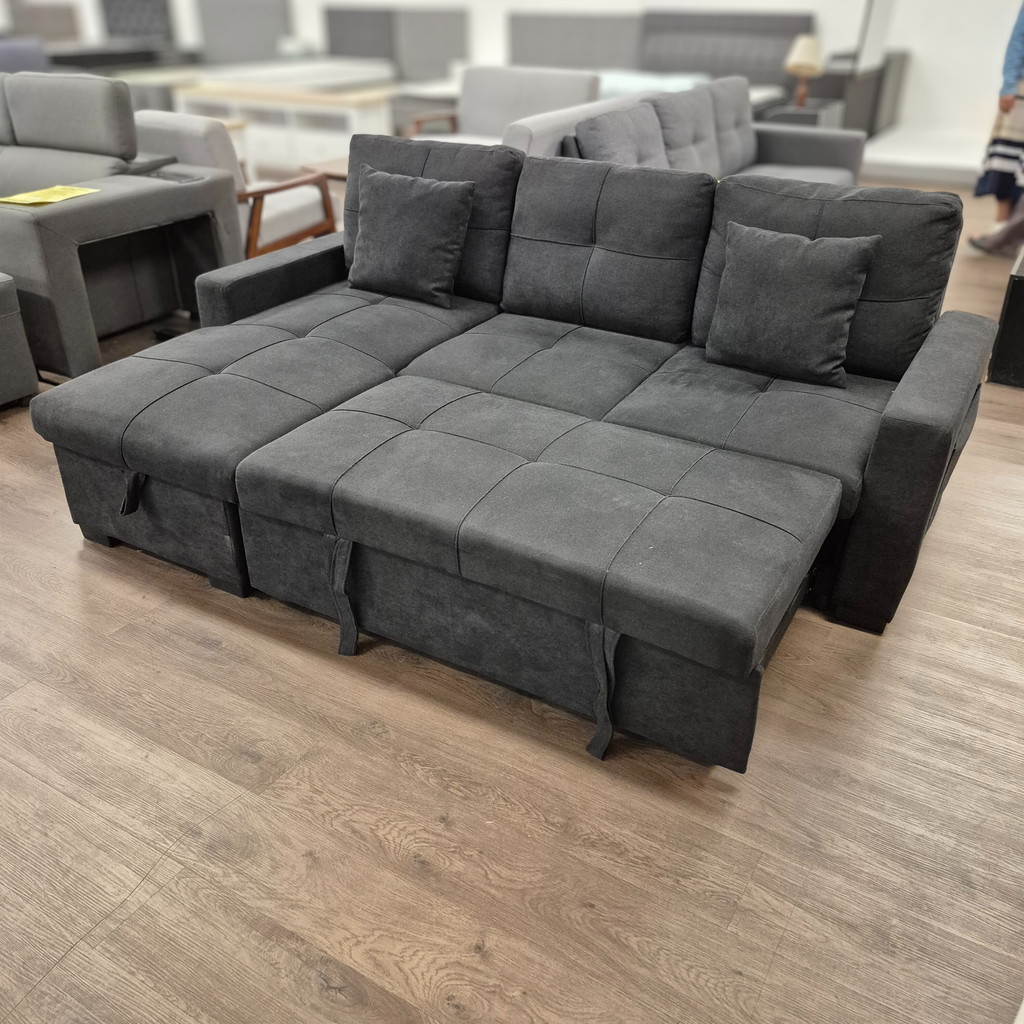 Solomon: 3-Seat Fabric Sofa Bed w/ Reversible Chaise