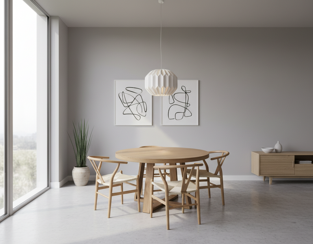 With its natural timber tones and iconic chair design, the Airlie Dining Set complements a wide range of interiors, including Scandinavian, coastal, modern, and minimalist spaces. The round table enhances flow and functionality, making it a practical yet stylish choice for dining rooms and kitchens.