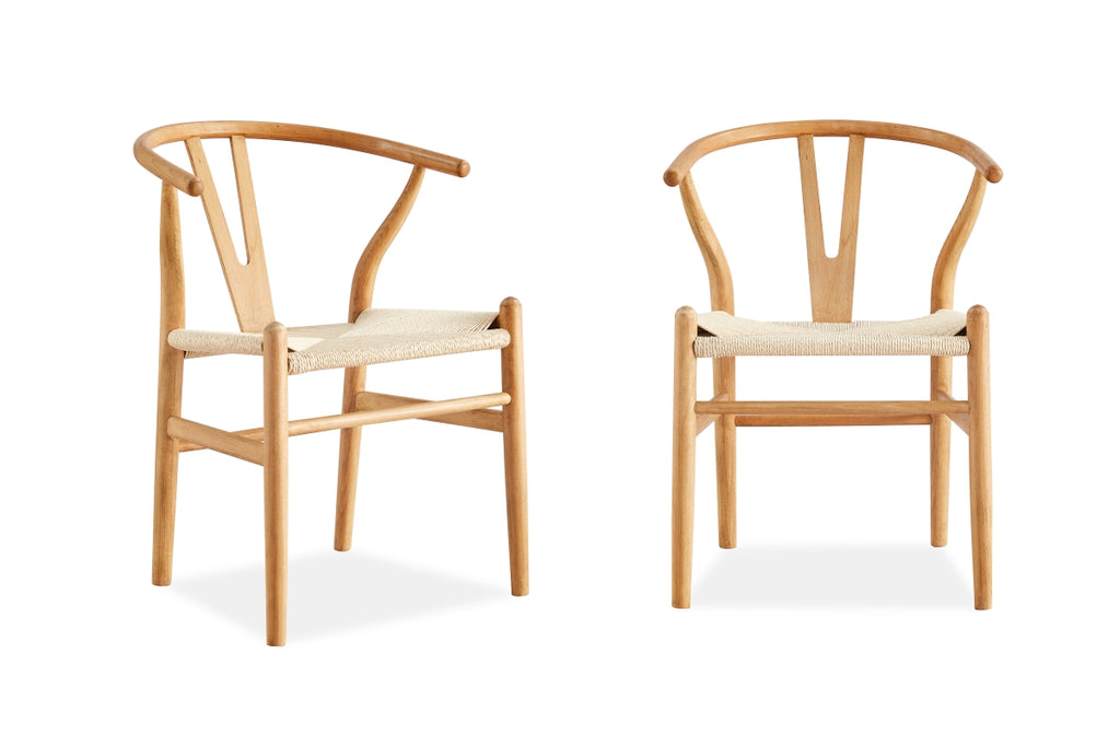 The set includes 4 classic wishbone dining chairs, known for their elegant silhouette and ergonomic comfort. Each chair features a handwoven seat, offering excellent support and a breathable, comfortable sitting experience.