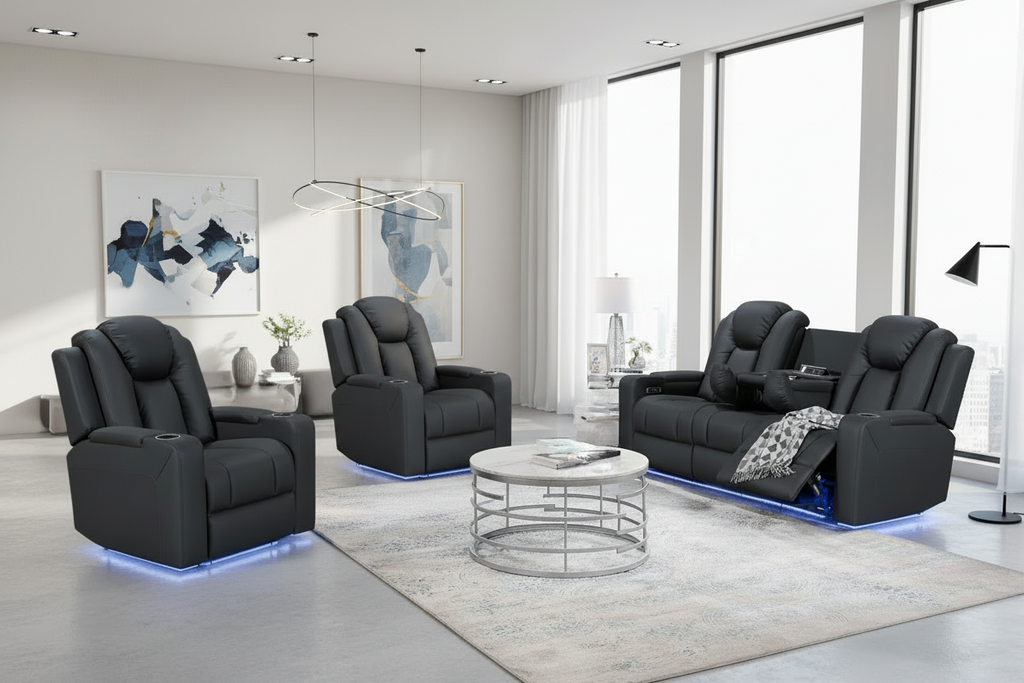 Breeze 3+1+1 Black Electric Recliner Package