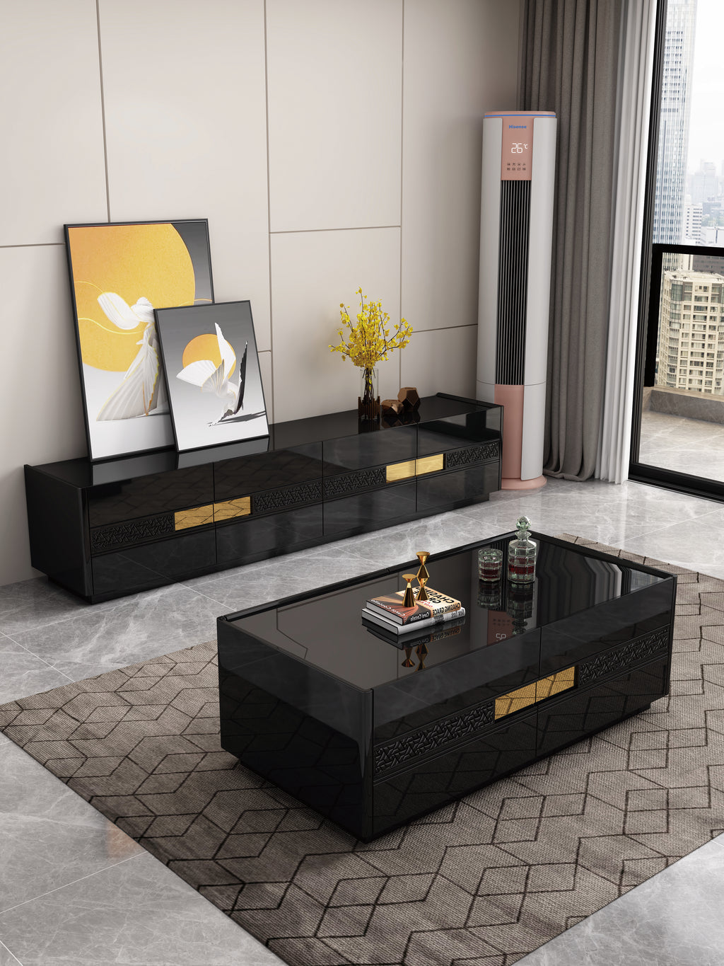 Upgrade your living room with the Drome Coffee Table, a sleek and modern furniture piece designed to blend elegance, functionality and everyday convenience. Featuring a sophisticated black and gold colour combination, this coffee table instantly elevates the look of any space with its premium, luxe aesthetic.