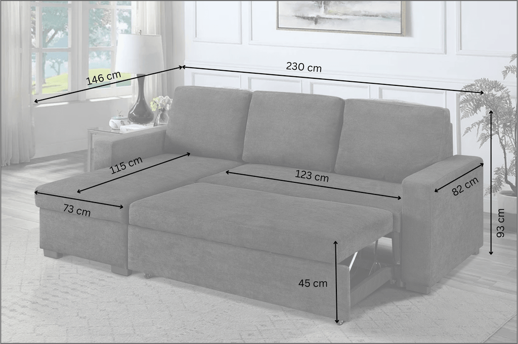 • Pull-Out Sofa Bed: Easily convert this stylish sofa into a cozy bed for overnight guests, ensuring both comfort and convenience.