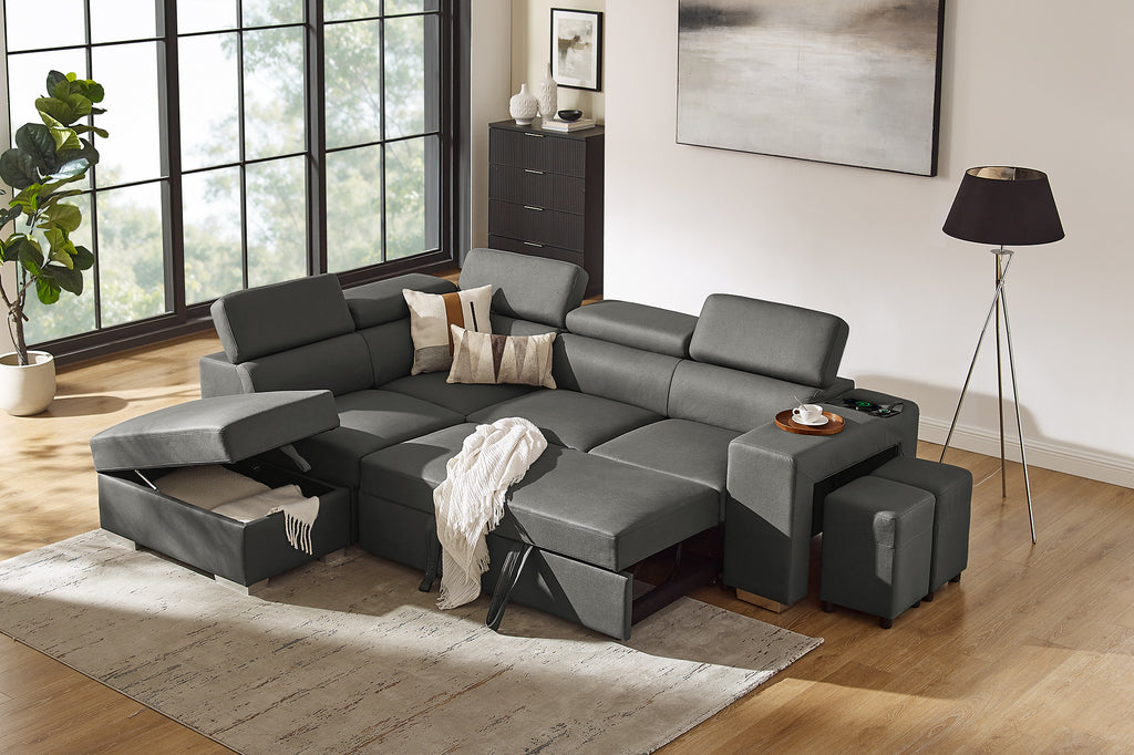 Upgrade your living space with the Everest II Pull-Out Sofa Bed. Its pull-out bed, adjustable headrest, and additional ottomans make it the perfect solution for modern living.