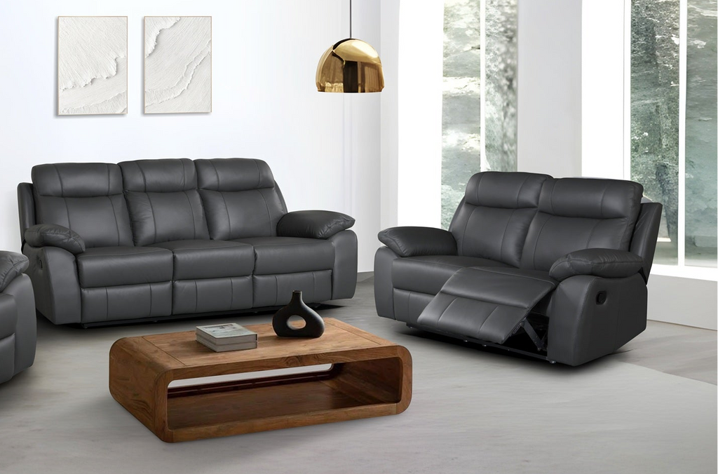 Crafted from high-quality genuine leather, the Latrobe recliner suite delivers a soft, durable, and easy-to-maintain finish. The Dark Grey colour adds depth and sophistication to any interior, making it ideal for modern and minimalist homes alike.