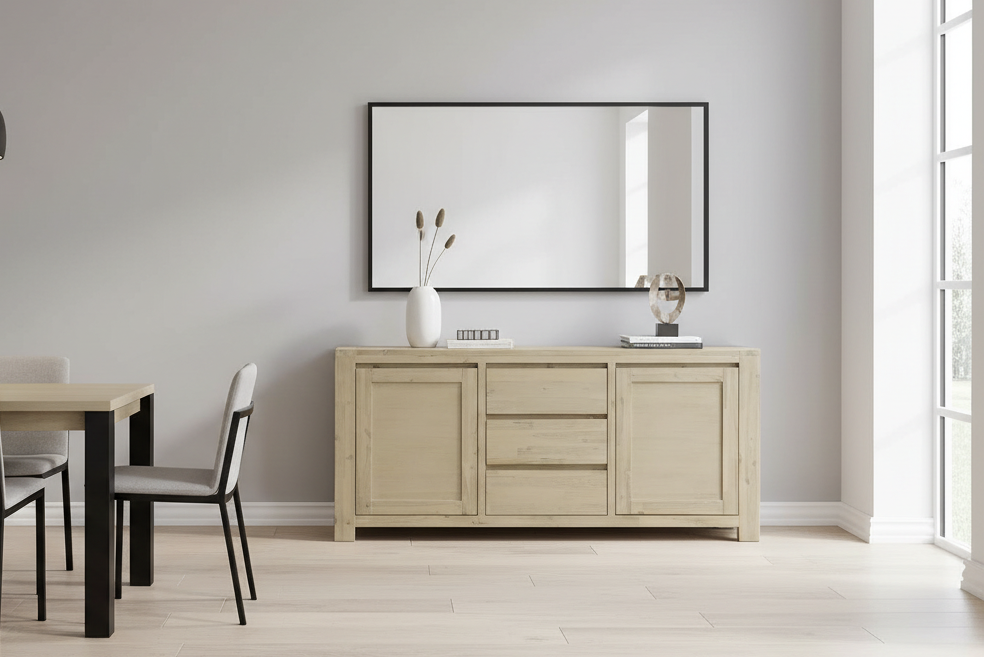 Bring timeless style and practical storage to your dining or living space with the Nelson Buffet Table. Crafted from solid acacia wood, this beautifully designed buffet offers durability, warmth, and natural character that enhances both modern and classic interiors.