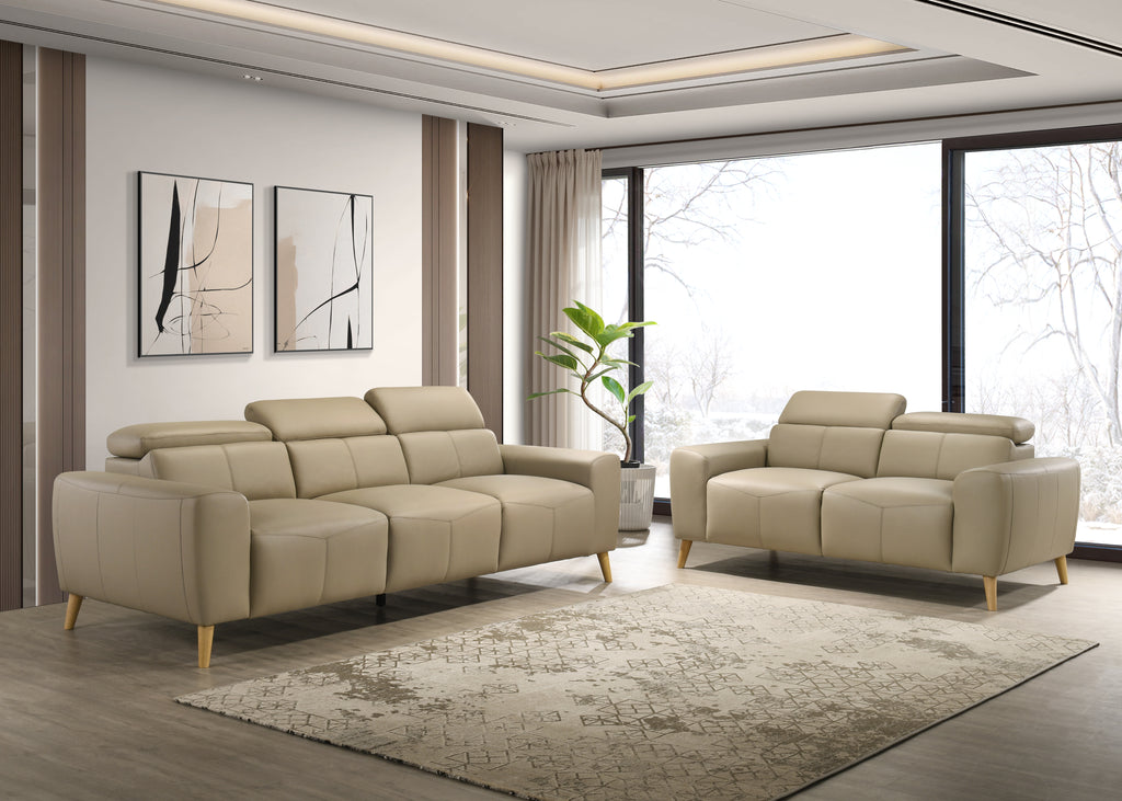 Transform your living space with the Percy 3 Seater and 2 Seater Khaki Sofa Set, a premium combination designed for style-focused homes. Upholstered in genuine Khaki leather, this modern sofa set delivers superior comfort, adjustable headrests, and a sophisticated aesthetic that elevates any contemporary interior.